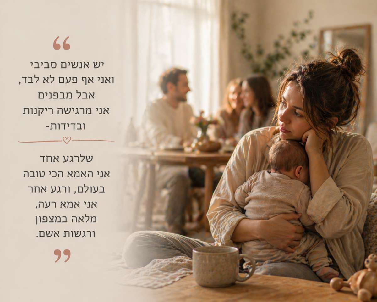 אחד הדברים הקשים בתקופה שאחרי הלידה הוא לא רק הבידוד הפיסי, אלא הבדידות הרגשית – התחושה שאין מי שמבין אותך או רואה את מה שאת עוברת באמת.